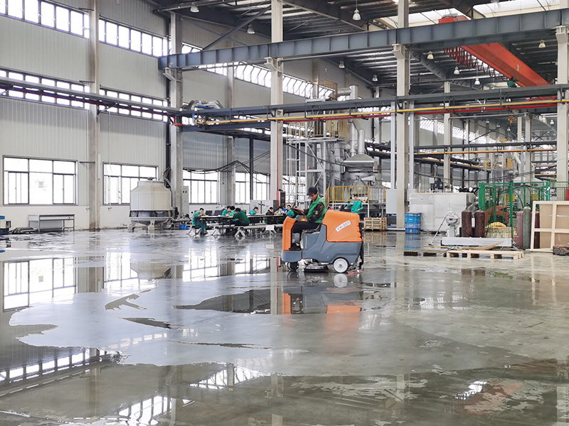 在前期與客戶的溝通中了解到客戶工廠占地面積大,車間地面油污較高。針對此情況,推薦了我公司大型駕駛式洗地機YH-860,此款設備以其每小時6000平方米的清潔效率,適合大型工廠、地下停車場、商超等場所。